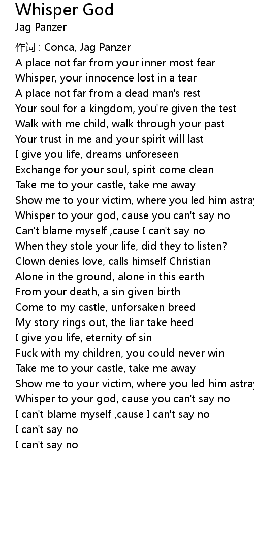 | Whisper to your god, cause you can' t say no | |