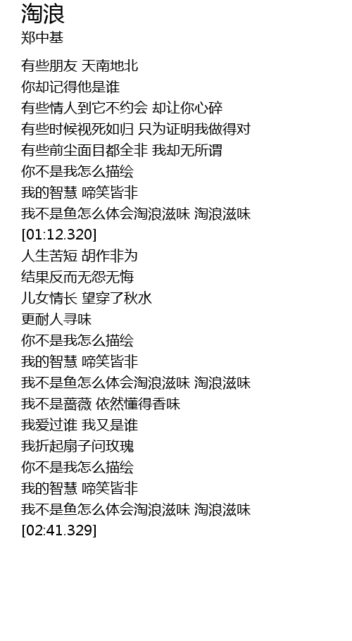 | [02:29.720] | 我不是鱼怎么体会淘浪滋味 淘浪滋味 |