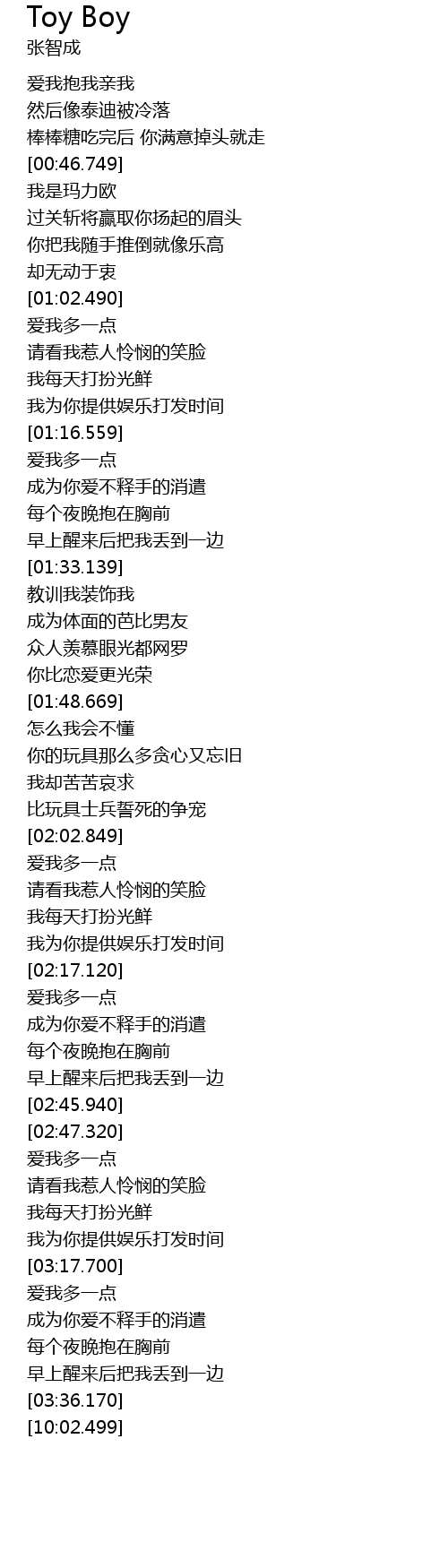 | [02:03.199] | 爱我多一点 |