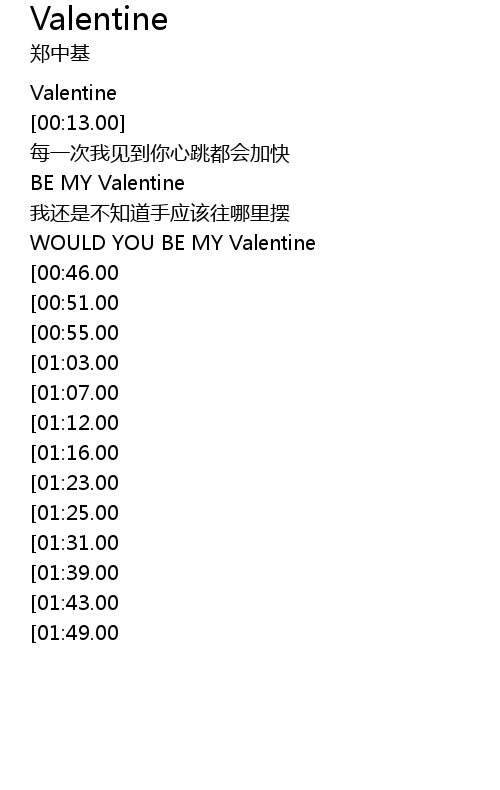 | [02:30.00][00:51.00] | BE MY VALENTINE |