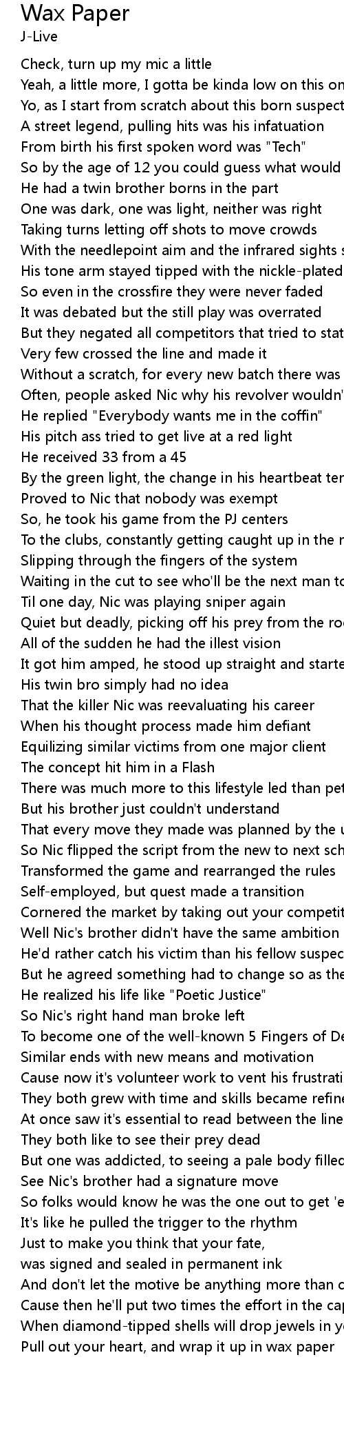 Pull out your heart, and wrap it up in wax paper |