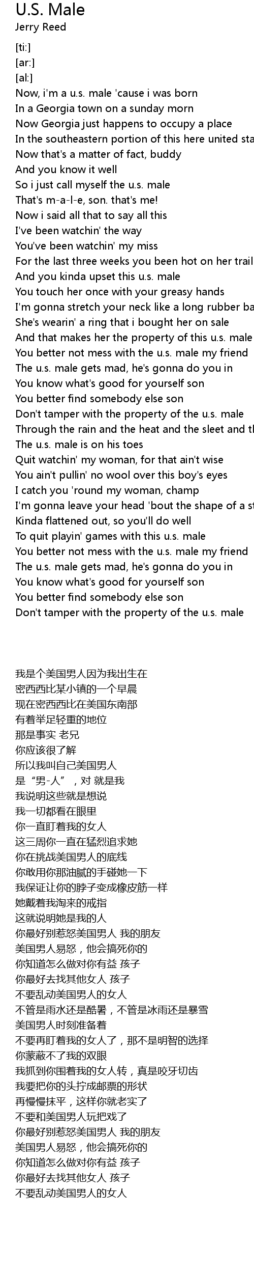 [00:48.13] You better not mess with the u.s. male my friend