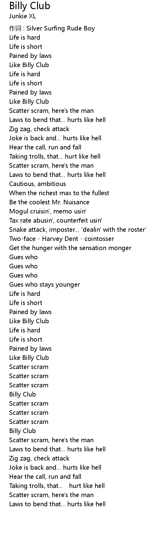 | 歌曲 | Billy Club |