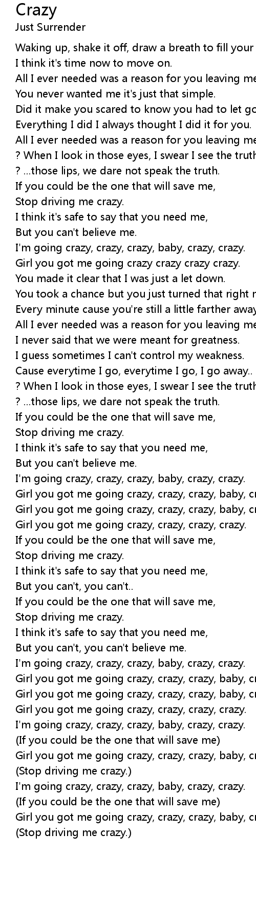 Girl you got me going crazy, crazy, crazy, crazy. |