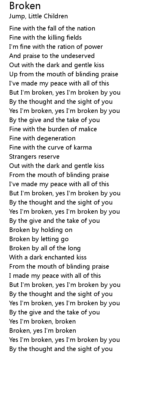 Yes I'm broken, yes I'm broken by you |