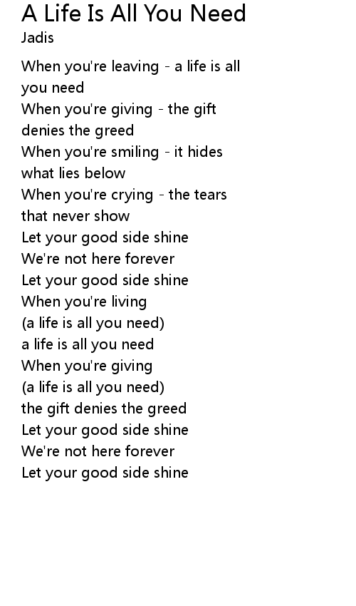| (a life is all you need) | |