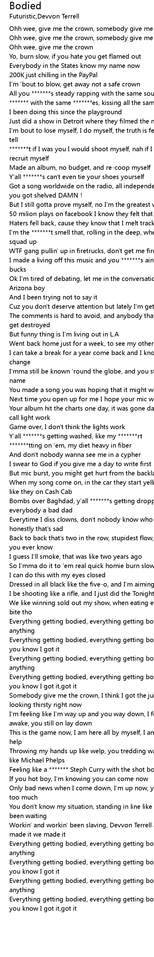 | [02:35.406] | Everything getting bodied, everything getting bodied, send me a beat you know I got it, got it |
