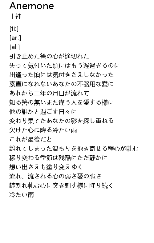 | [00:48.34] | 引き止めた筈の心が途切れた |