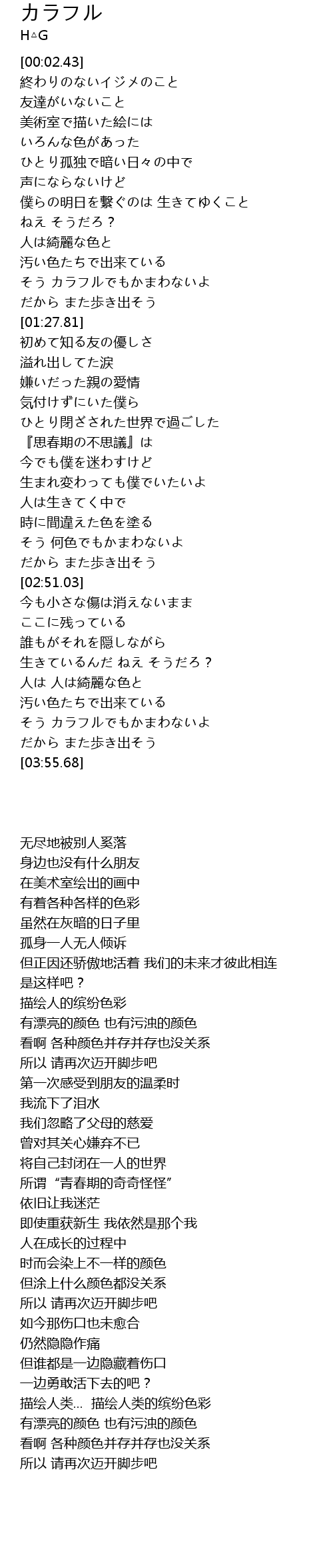 | [03:42.73] | そう カラフルでもかまわないよ |