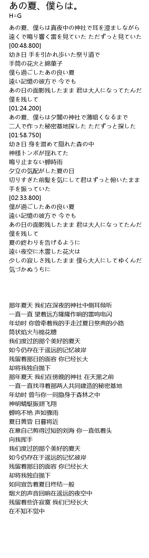 | [01:03.100] | 僕ら過ごしたあの良い夏 |