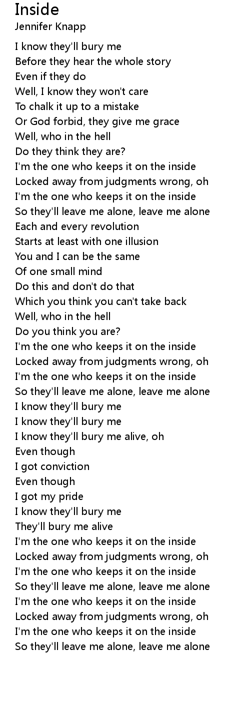 I'm the one who keeps it on the inside |