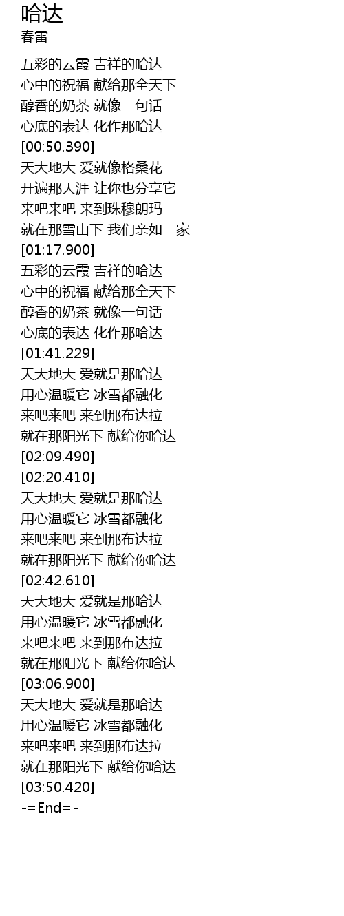 | [03:26.600] | 天大地大 爱就是那哈达 |