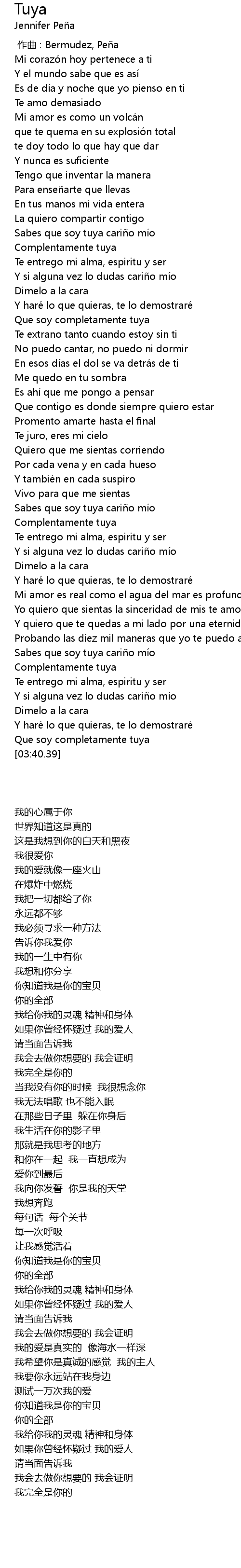 | [03:09.34] | Sabes que soy tuya cari o mi o |