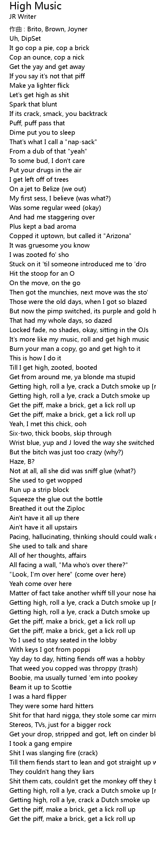 | Getting high, roll a lye, crack a Dutch smoke up [repeated] | |