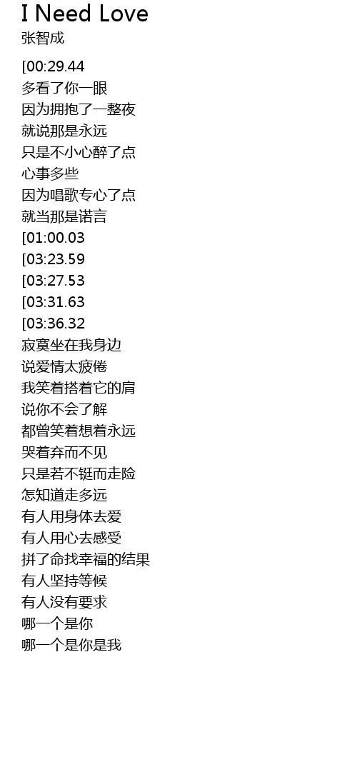 | [01:47.83][01:00.03] | Cause I Need Love |