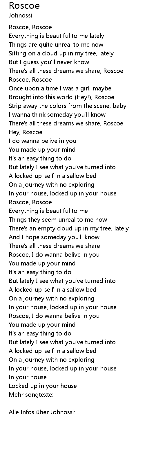 | Roscoe, I do wanna belive in you | |