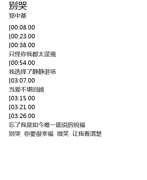 | [03:40.00][03:07.00][01:07.00] | 别哭 别耽误自己的幸福 当爱不堪回顾 |
