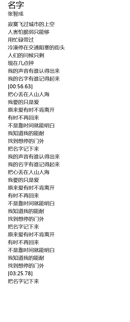 | [01:55.37] | 我的名字有谁记得起来 |