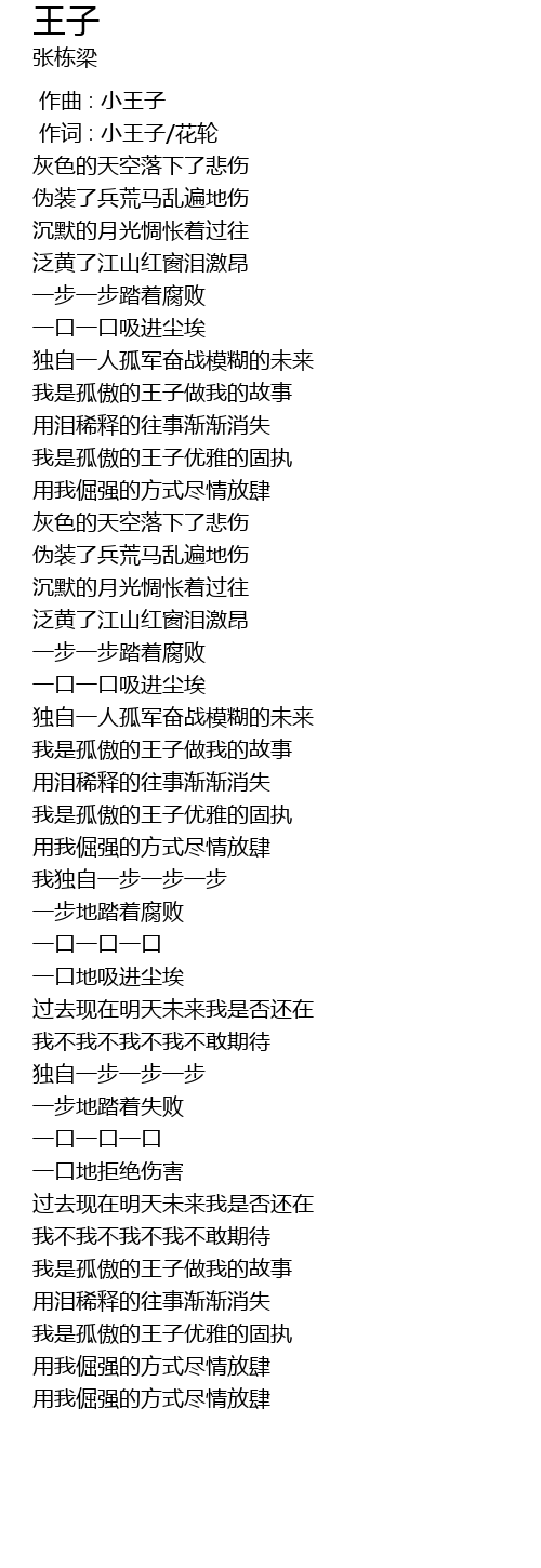 | [02:03.69] | wǒ shì gū ào de wáng zǐ zuò wǒ de gù shì |