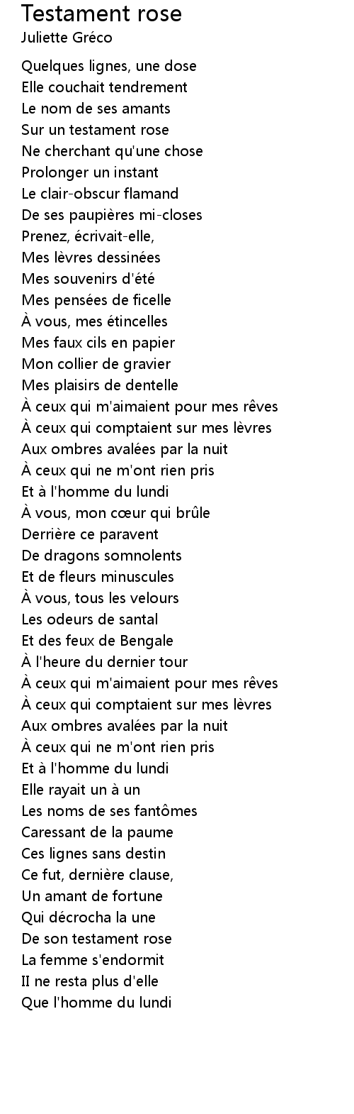 | De son testament rose | |