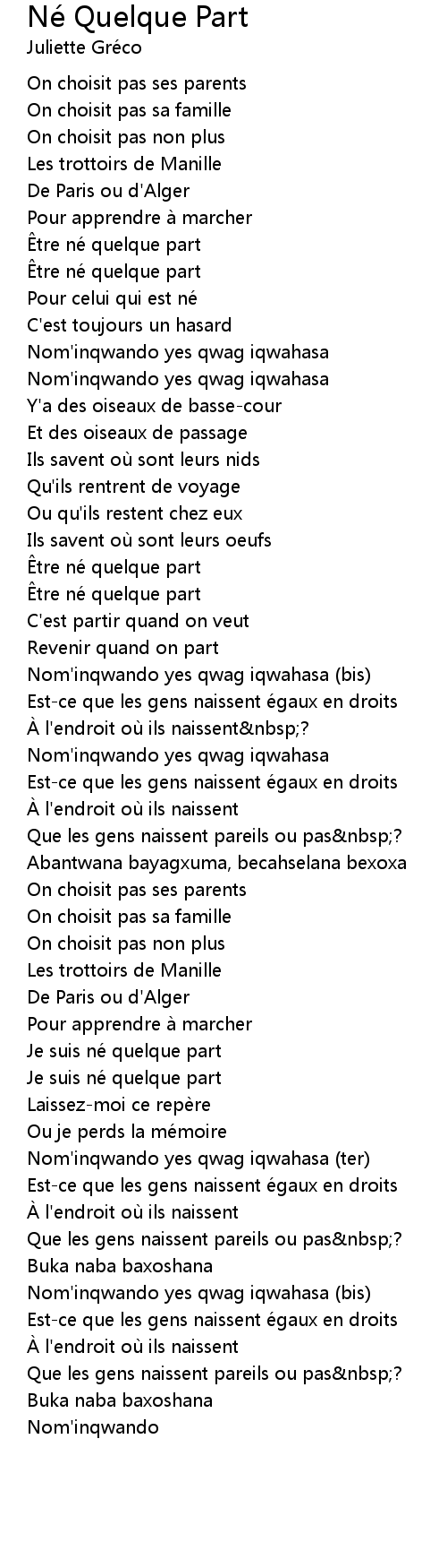 | Je suis ne quelque part | |