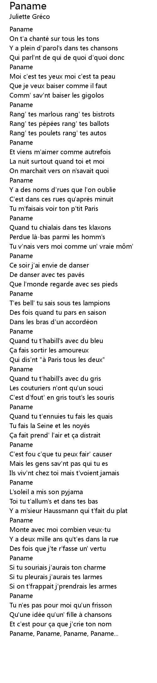 | 歌曲 | Paname |