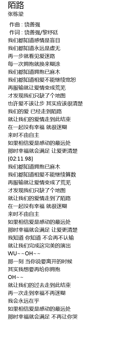 | [02:53.87] | 就让我们的爱情走到了陌路 |