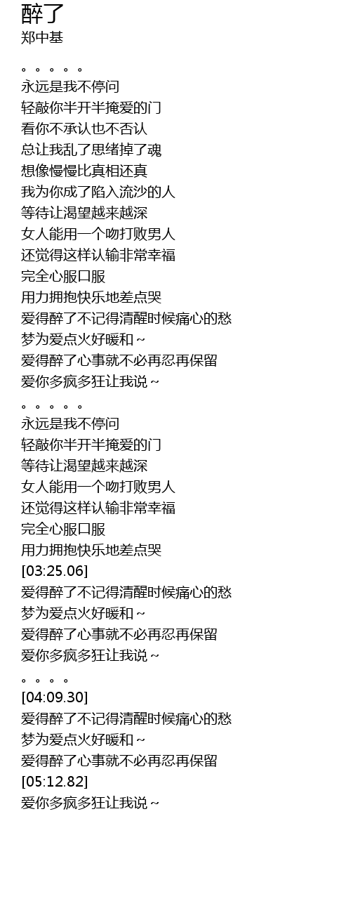 | [03:45.47] | ài dé zuì le xīn shì jiù bù bì zài rěn zài bǎo liú |