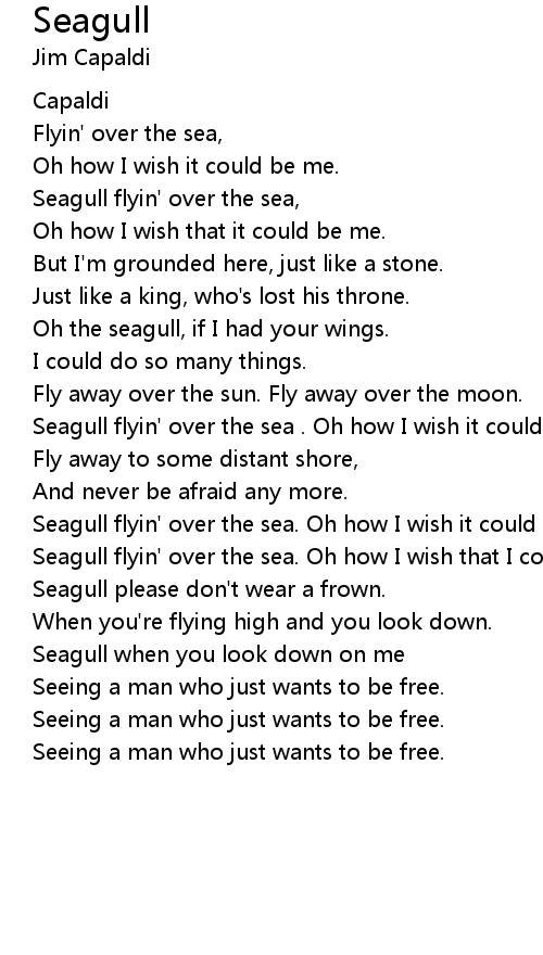 Seagull flyin' over the sea . Oh how I wish it could be me.