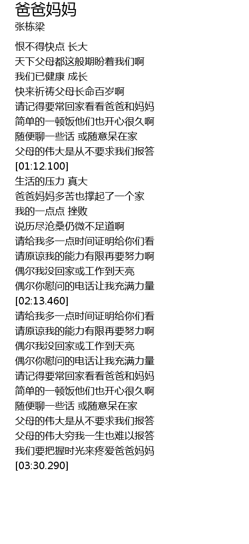 | [03:22.140] | 我们要把握时光来疼爱爸爸妈妈 |
