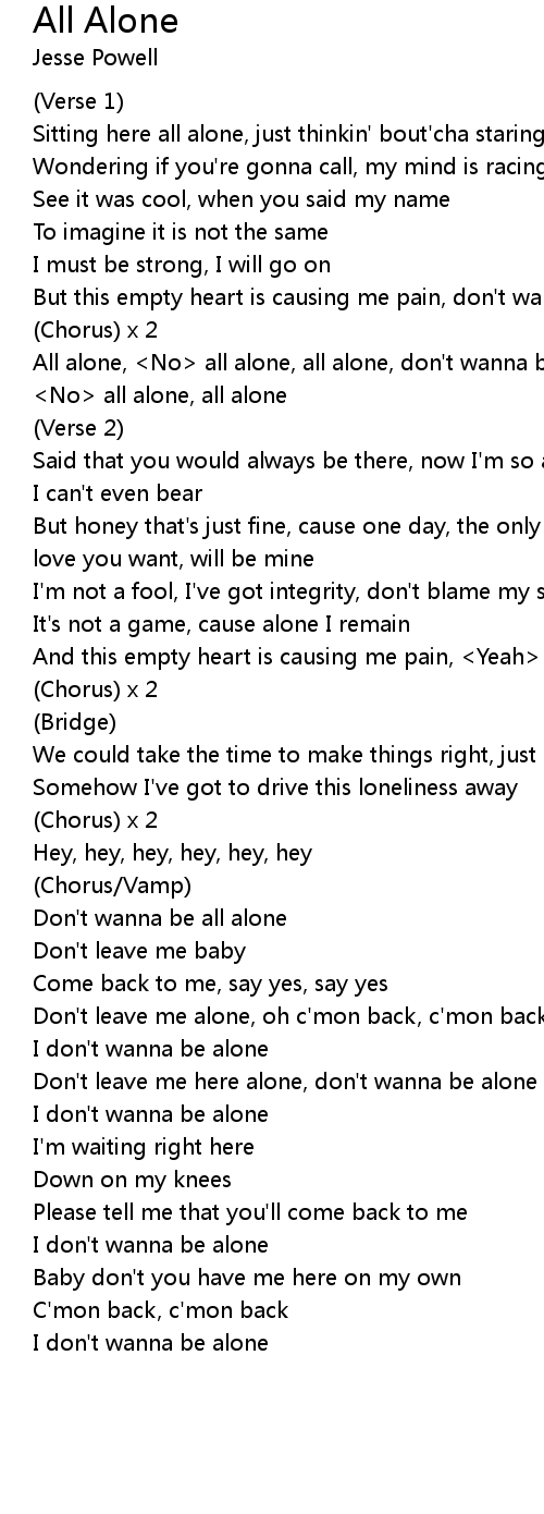 All alone, <No> all alone, all alone, don't wanna be all alone |