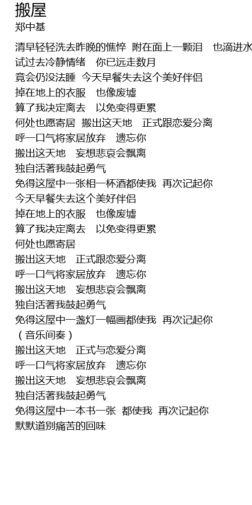 | [01:14] | 何处也愿寄居 搬出这天地 正式跟恋爱分离 |