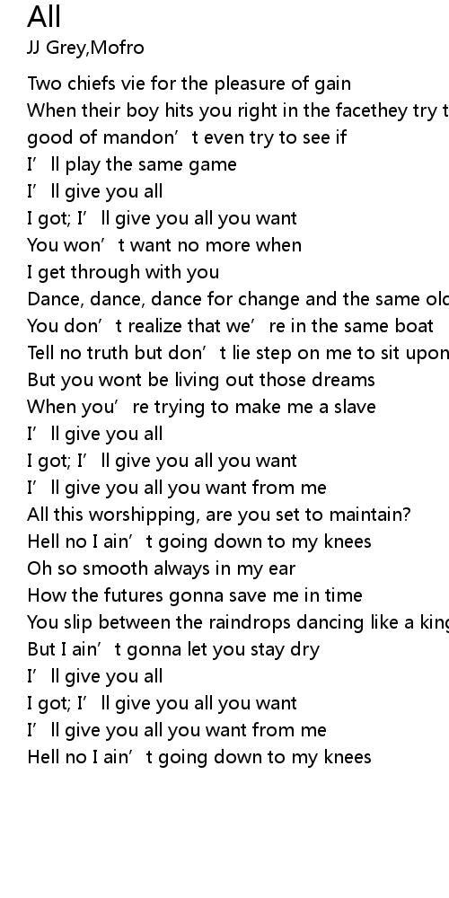 | When their boy hits you right in the facethey try to buy you off say its for the good of mandon' t even try to see if | |