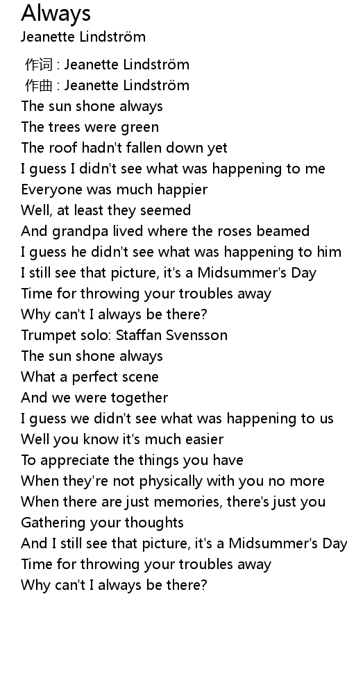 | [00:00.000] | 作词 : Jeanette Lindström |