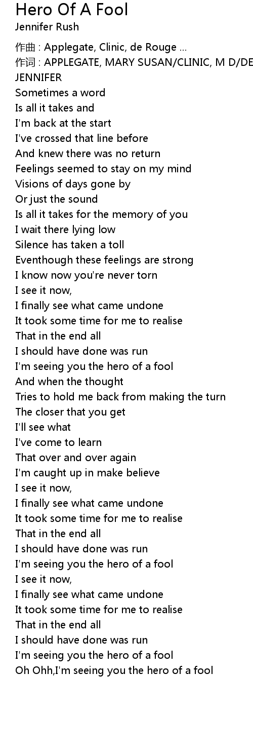 | Oh Ohh,I'm seeing you the hero of a fool |