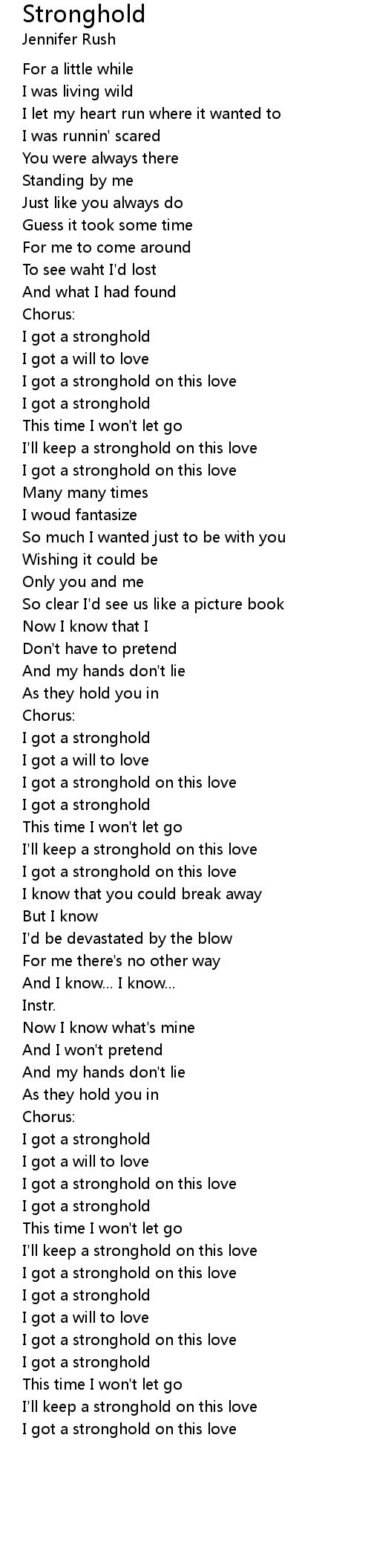 I'll keep a stronghold on this love |