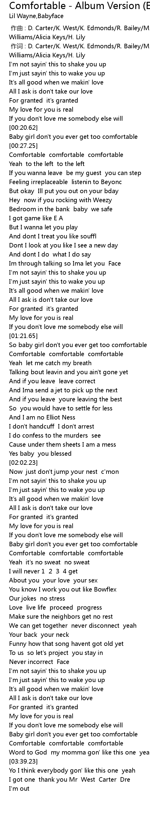 | [02:24.98] | Baby girl don't you ever get too comfortable |