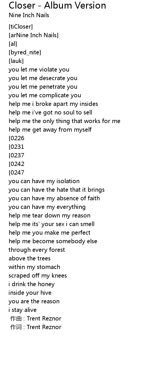 | [00:00.000] | 作词 : Trent Reznor |