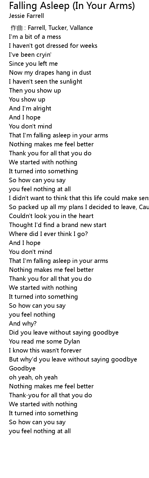 | [02:19.54] | That I' m falling asleep in your arms |