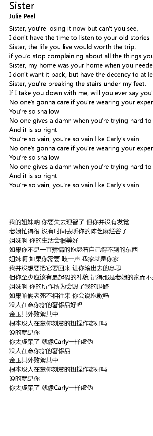 Sister, you're losing it now but can't you see, |