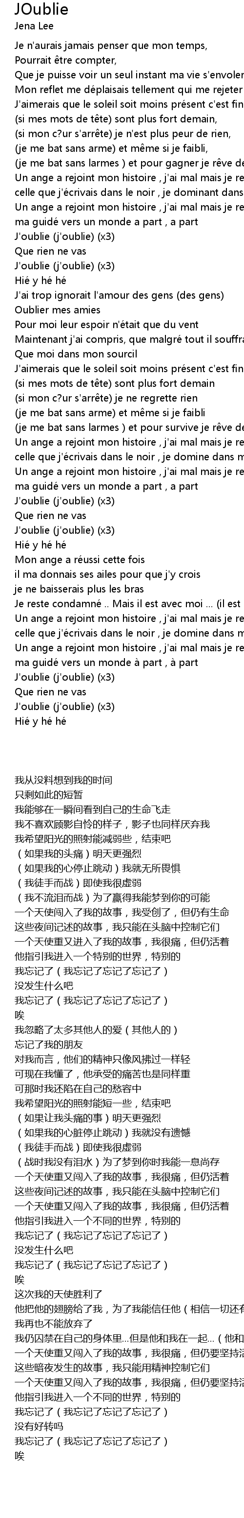 | [03:39.570] | J'oublie (j'oublie) (x3) |