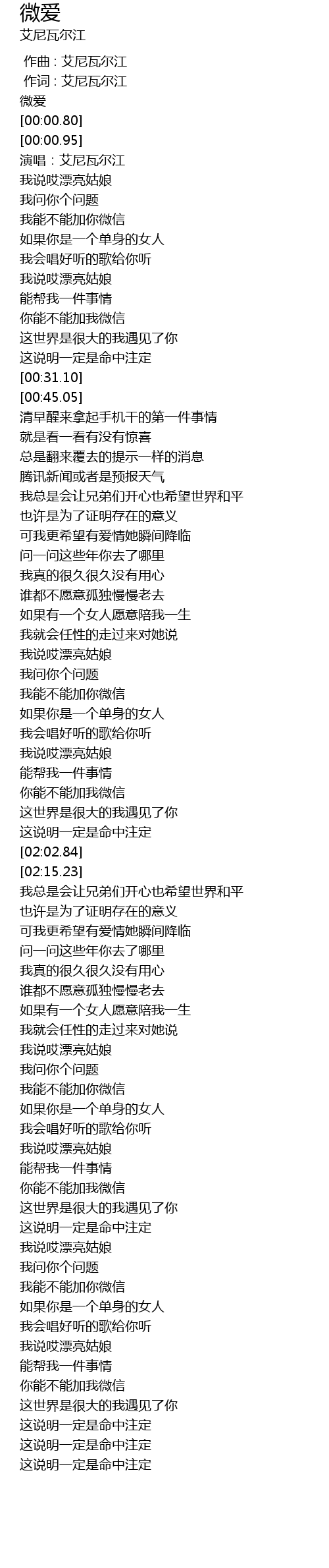 | [00:00.000] | 作曲 : 艾尼瓦尔江 |