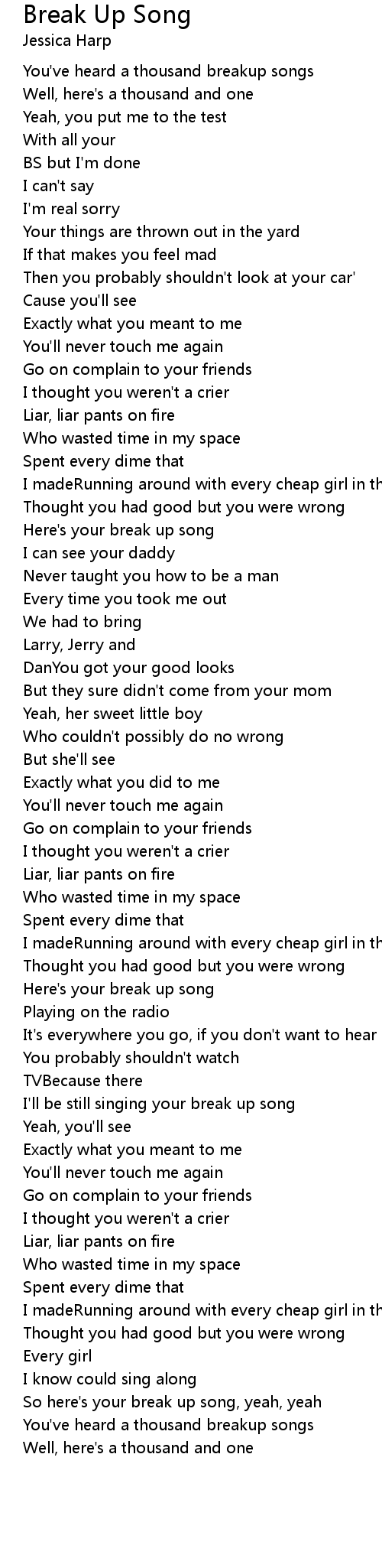 I'll be still singing your break up song |