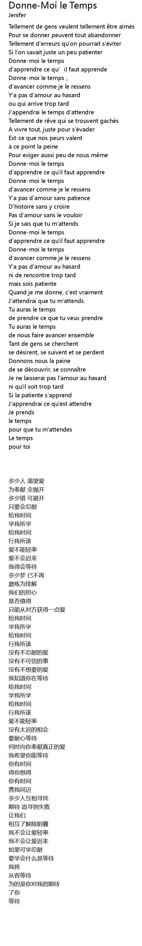 | [01:50.440] | Y' a pas d' amour sans patience |
