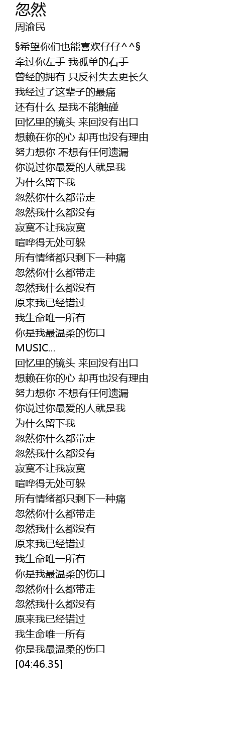 | [03:51.72] | 忽然我什么都没有 |