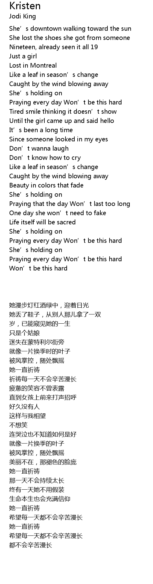 | 歌曲 | Kristen |