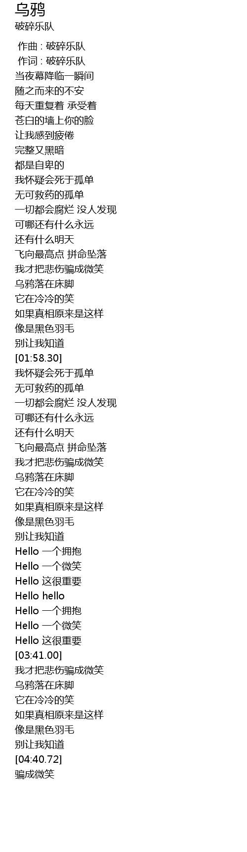 | [00:01.000] | 作词 : 破碎乐队 |