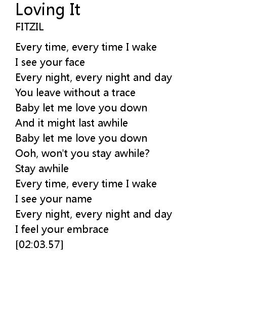 | [01:18.37] | Ooh, won't you stay awhile? |