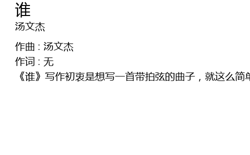 | 《谁》写作初衷是想写一首带拍弦的曲子,就这么简单,写于2013年。 |