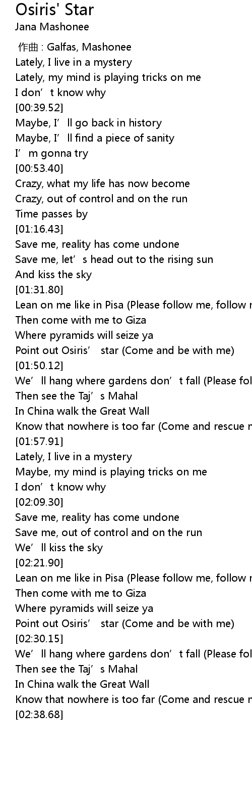 | [01:48.39] | Point out Osiris’ star (Come and be with me) |
